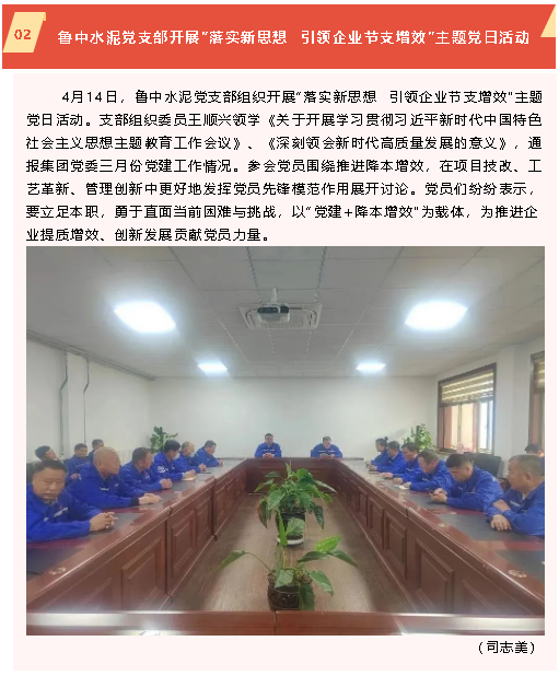 【黨建】東瓷科技黨支部到集團(tuán)開展開放式組織生活、魯中水泥黨支部開展“落實(shí)新思想 引領(lǐng)企業(yè)節(jié)支增效”主題黨日活動(dòng)