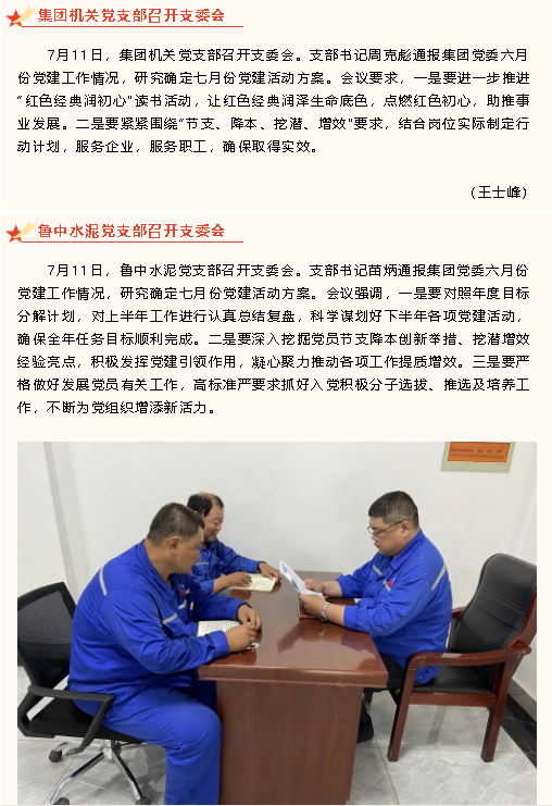 【黨建】集團機關、魯中水泥、魯蒙水泥黨支部召開支委會