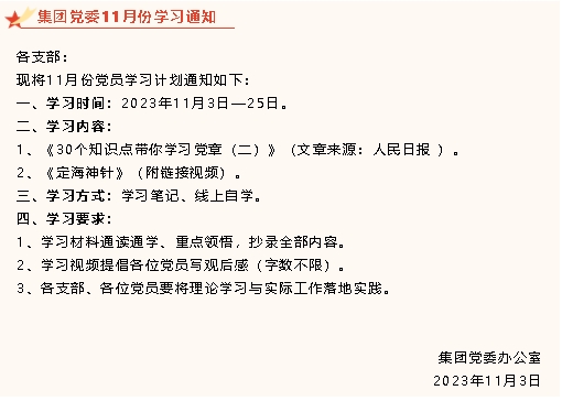【通知】集團(tuán)黨委11月份學(xué)習(xí)通知