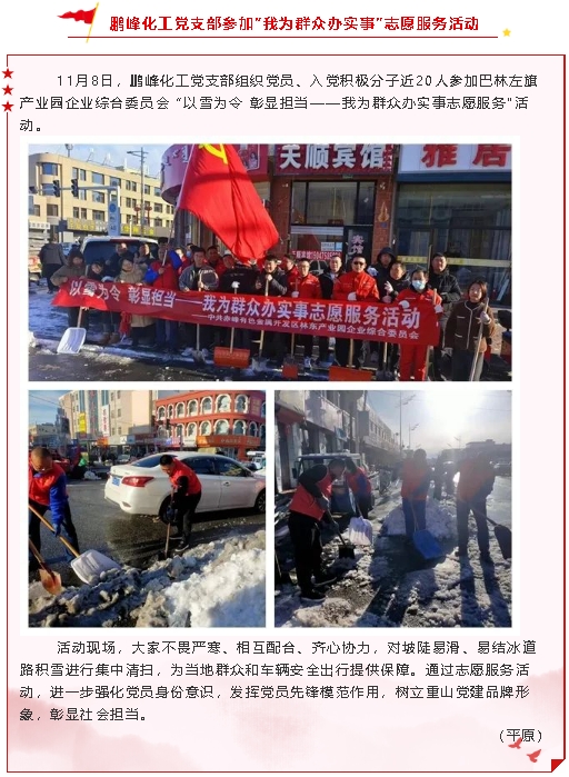 【黨建】黃驊三陽黨支部召開預(yù)備黨員轉(zhuǎn)正支部大會、鵬峰化工黨支部參加“我為群眾辦實(shí)事”志愿服務(wù)活動(dòng)