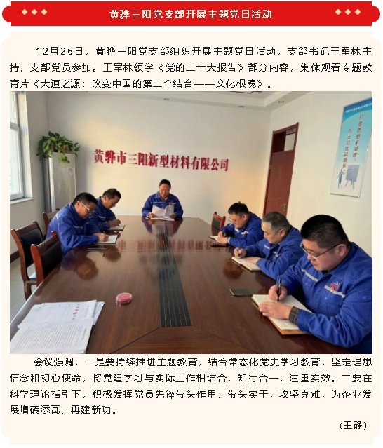 【黨建】重山光電黨支部、黃驊三陽黨支部開展主題黨日活動